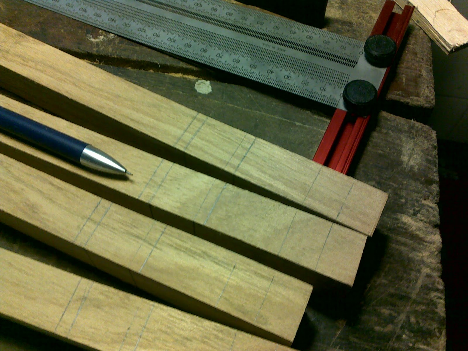 Usei uma lapiseira 0,5mm para fazer as marcações, com o auxílio da minha INCRA T-Rule. "Apanhei" um pouco da lapiseira. Estou acostumado com marcações com estilete, mas este não funciona com a INCRA, que é de fato fantástica!