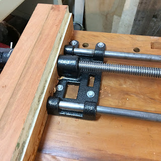 Próximo passo, colar e parafusar o barramento/face da morsa que será fixa na bancada.