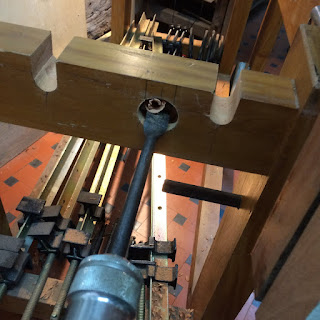 Testei os furos antes de colar uma das faces da morsa, que substituiu o antigo barramento.