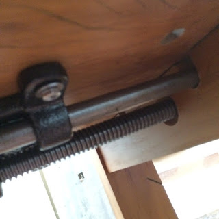 Além de dimensionar a madeira, precisei fazer algumas adaptações na bancada. Decidi instalar esta nova morsa numa das laterais e, para começar, precisei tirar um dos barramentos.